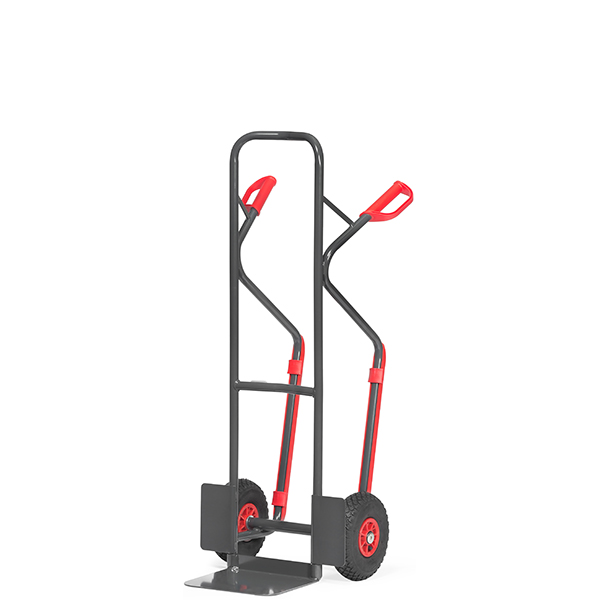 Stahlrohrkarren mit Lufträder und Gleitkufen – Tragkraft 300 kg – 250 x 320 mm (Schaufeltiefe x Schaufelbreite) – 1300 x 580 mm (Höhe x Breite) Aussenmasse