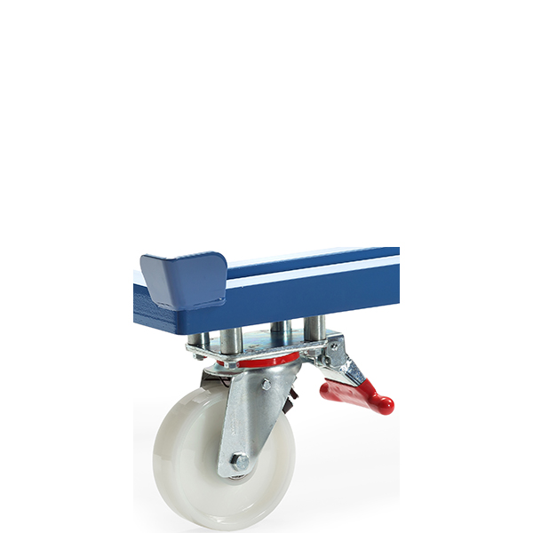 Mehrpreis für 2 Lenkrollen mit feststehenden Festeller-Bestätigungshebeln (anstelle Lenkrollen mit mitschwenkenden Betätigungshebeln) – Unterfahrhöhe erhöht sich auf 237 mm