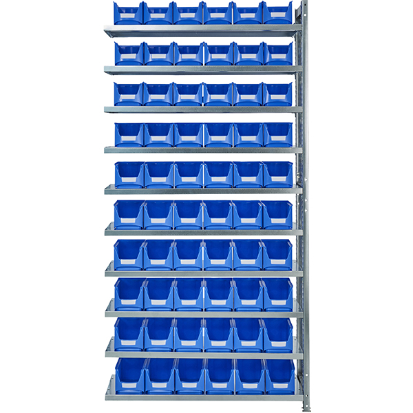Procoss Anbauregal verzinkt mit 60 Sichtlagerkästen – Grösse (HxBxT) 2000 x 1000 x 300 mm – Regal verzinkt