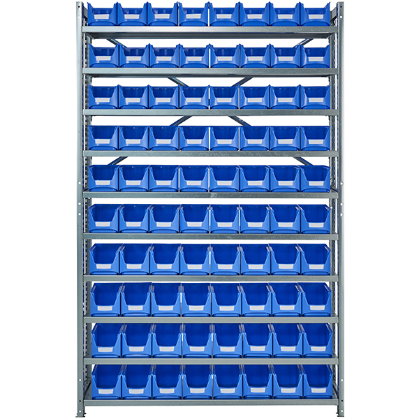 Procoss Grundregal verzinkt mit 80 Sichtlagerkästen – Grösse (HxBxT) 2000 x 1290 x 300 mm – Regal verzinkt