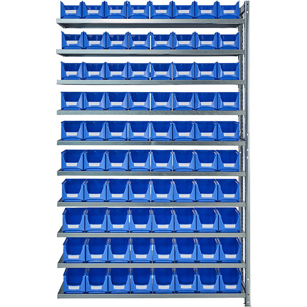 005-2121 Procoss Anbauregal verz. mit 80 Sichtlagerkästen – Grösse (HxBxT) 2000 x 1260 x 300 – Regal verzinkt – Farbe der Sichtlagerkästen blau