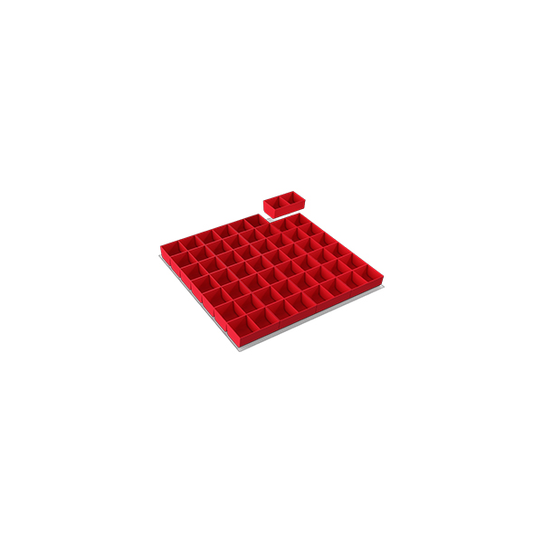 SO-851867-00 Schubladeneinsatz Serie 70 Greifschalen für Schubladen 612 x 612 mm, für Schubladenhöhe 75 mm – 28 Greifschalen mit je 1 Unterteiler